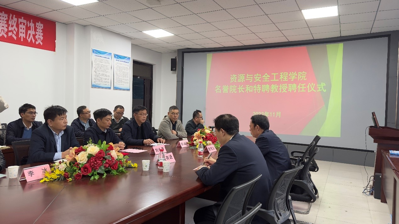 11月19日,beat365举行资源与安全工程学院名誉院长和特聘教授聘任仪式。河南省煤炭学会理事长陈党义受聘担任资源与安全工程学院名誉院长,郑州煤矿机械集团股份有限公司原副总经理、总工程师高有进教授受聘为beat365特聘教授。校党委书记刘永涛,副校长张瑞林,校党委委员、组织部部长赵红亮,资源与安全工程学院领导班子及骨干教师、环境与生物工程学院领导班子及骨干教师参加会议。座谈会由赵红亮主持。