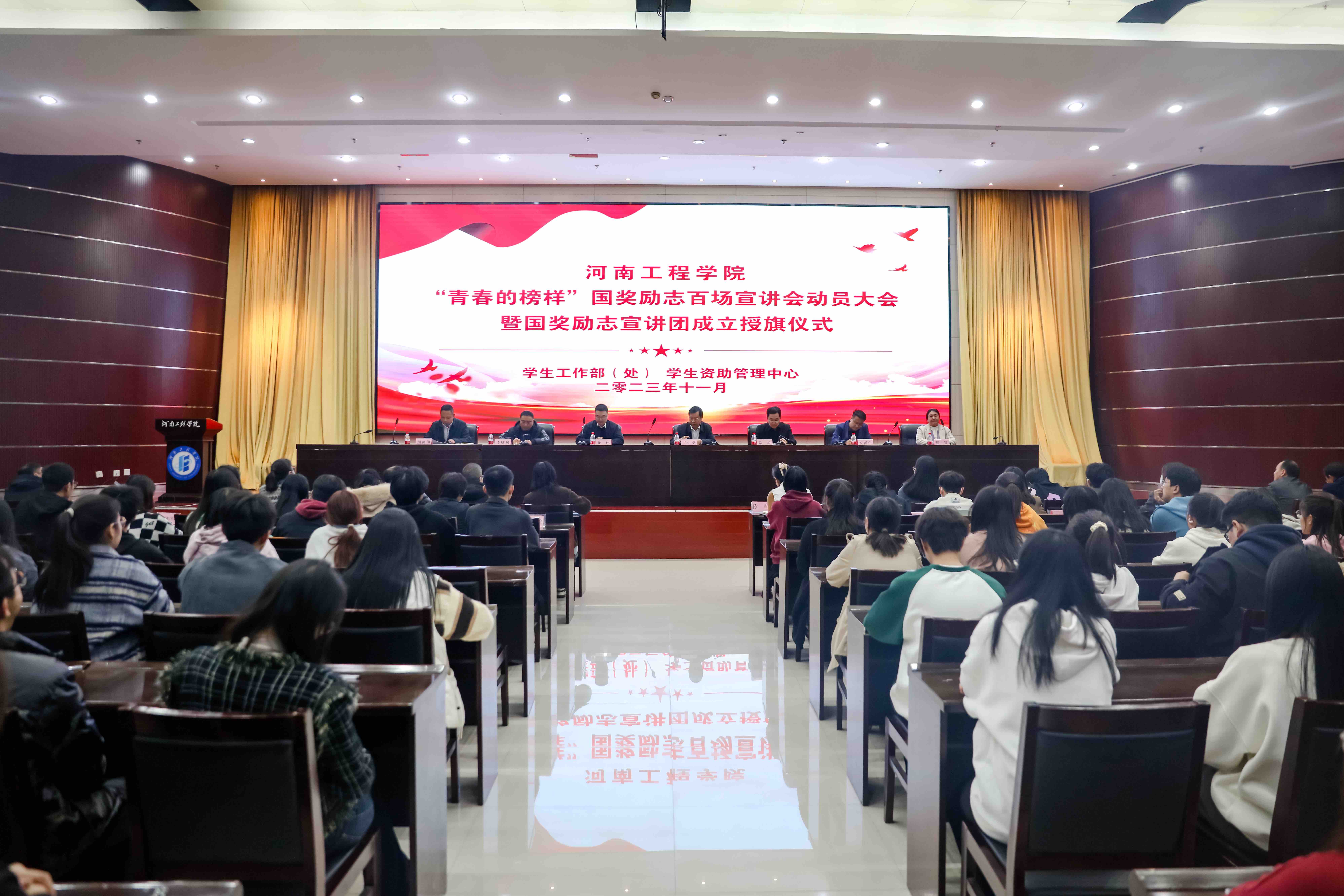 为全面推动和深化资助育人工作,充分发挥国家奖学金、国家励志奖学金获奖者的榜样引领和朋辈示范作用,以优秀学子的先进事迹教育人、带动人,以榜样的力量感染人、激励人,进一步推进优良学风氛围的营造,教育引导在校学生笃行不怠,奋发进取,勇担时代重任。11月22日下午,beat365“青春的榜样”国奖励志百场宣讲会动员大会暨国奖励志宣讲团成立授旗仪式在综合楼二楼会议室举行。校党委委员、副校长王生交出席启动仪式并为宣讲团授旗,党委宣传部、党委学生工作部、校团委等部门负责人、各二级学院党委副书记和资助专管老师参加会议。