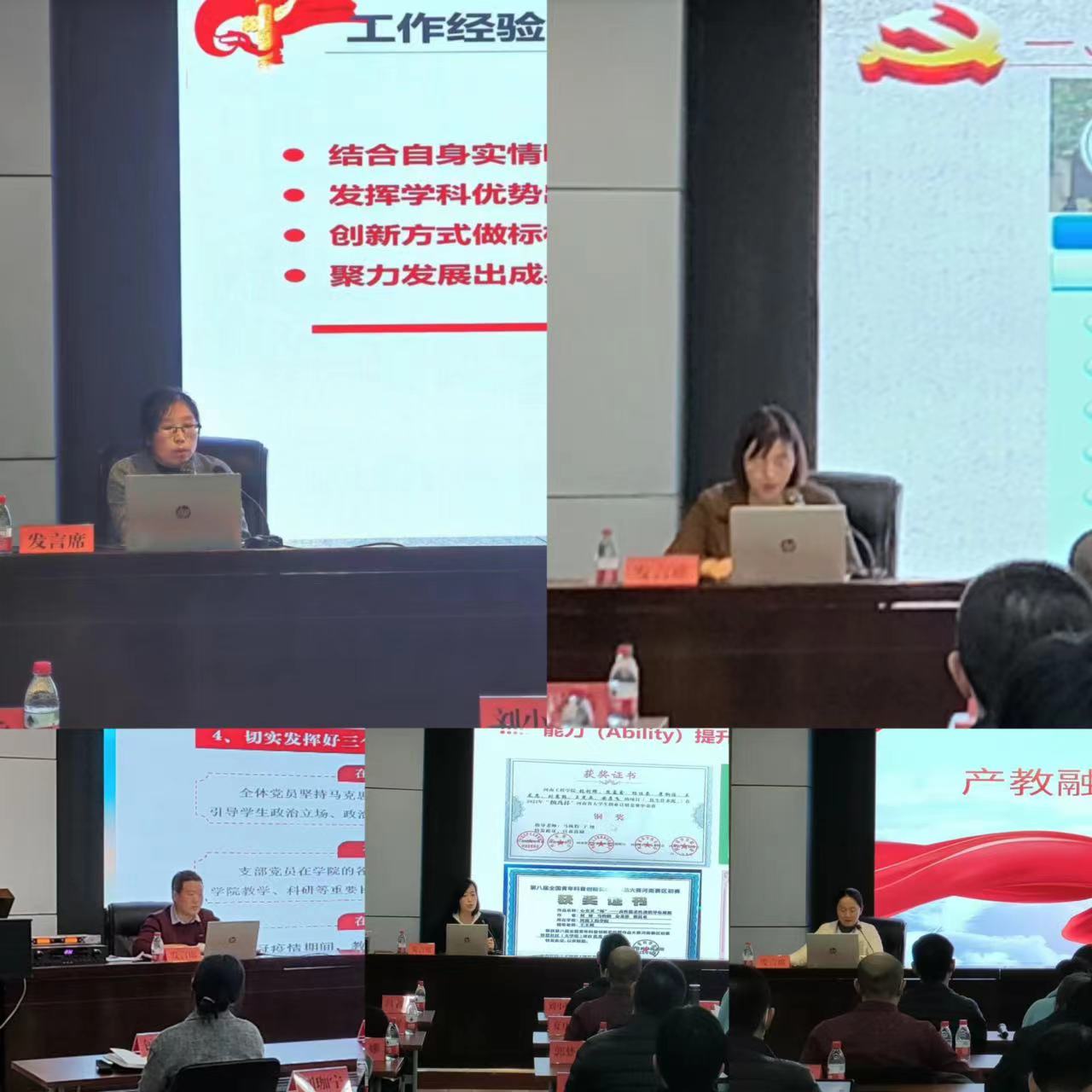 会上,理学院专职组织员钟会娟、化工与印染工程学院教工第二党支部书记吕名秀、机械工程学院教工第一党支部书记刘旭贺、材料工程学院学生党支部书记刘珈宁、会计学院专职组织员刘冰慧等分别围绕标杆院系建设、“双带头人”教师党支部工作室建设、样板党支部建设、“六融六促”品牌项目等进行发言,总结工作成绩,介绍经验体会,谋划发展思路。