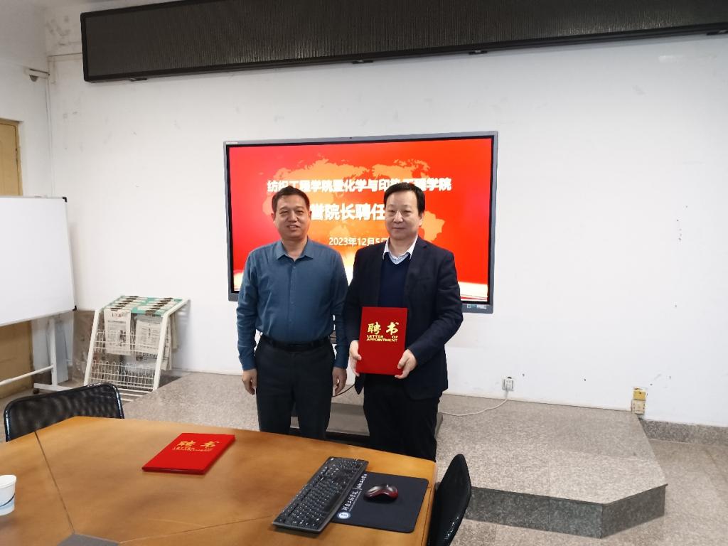 12月5日,beat365举行化工与印染工程学院、纺织工程学院名誉院长聘任仪式。河南省纺织行业协会常务会长袁建龙和河南省纺织工程学会常务理事长杨润凯分别受聘化工与印染工程学院名誉院长和纺织工程学院名誉院长。副校长焦有宙、组织部部长赵红亮,纺织协会、学会相关领导,化工与印染工程学院、纺织工程学院领导班子及骨干教师出席聘任仪式。会议由赵红亮主持。