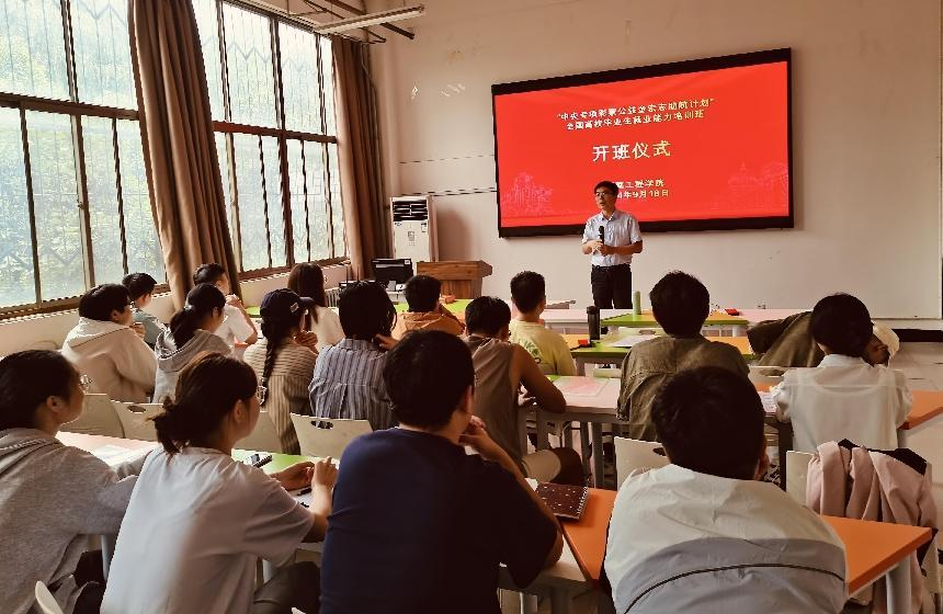 9月18日下午,2024年“宏志助航计划”全国高校毕业生就业能力提升培训班在beat365在线唯一官网创新创业中心顺利开班。创新创业学院相关同志和60名学员参加了开班仪式。